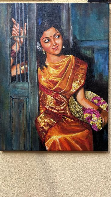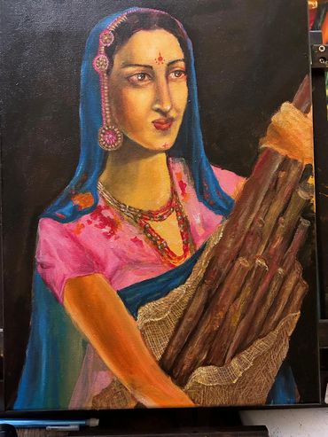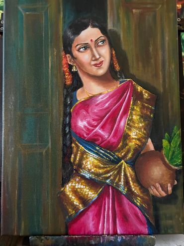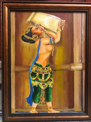 As a child my mother would read story books to me and after it was finished she would ask me to draw the pictures from the storybook. She motivated, encouraged, and appreciated my initial efforts as a child. This enabled me to become a self-taught artist. I am intrigued by the art and architecture of ancient Indian temples. I started to study them and, I was amazed to find the many depictions of women hunting, reading, riding horses, and fighting wars. These sculptures inspired me and I decided to paint them in acrylic on canvas.
